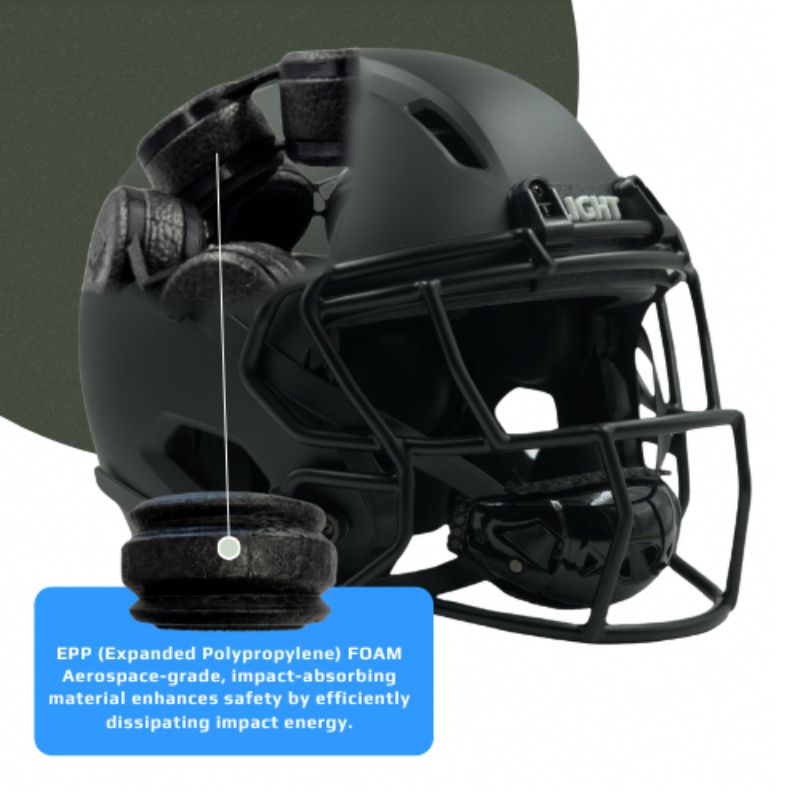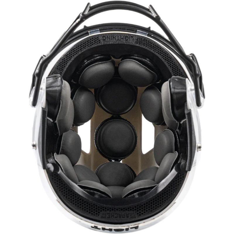 The interior of the Apache Lightning features strategically placed EPP pods (aerospace-grade foam) designed to absorb and disperse impact energy. Combined with customizable plush fitment pads, this football helmet delivers next-level comfort and protection.