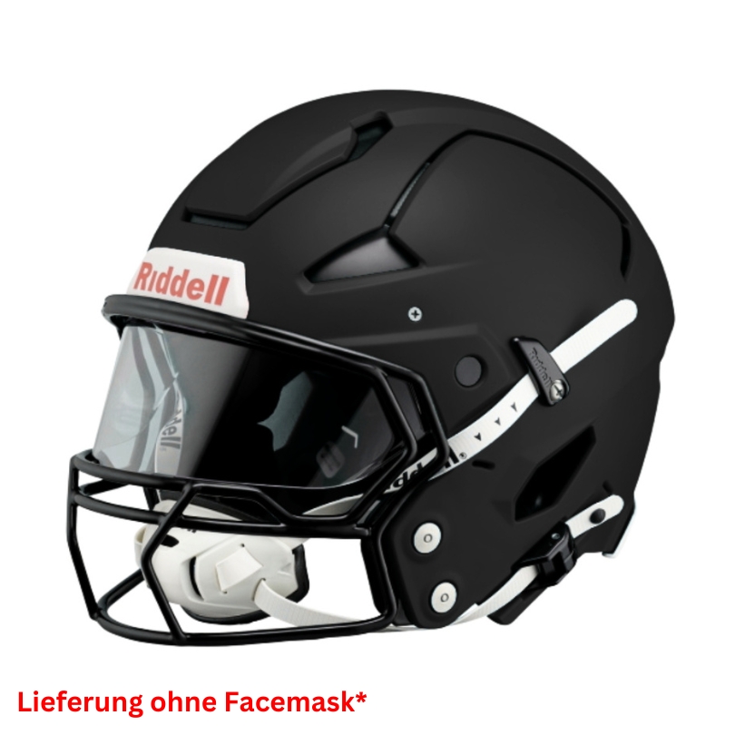 - An den Seiten und an der Rückseite der Schale angebrachte Flex-Einsätze interagieren und arbeiten mit dem Gesichtsmasken-Befestigungssystem zusammen, um die Reaktion auf Stöße zu verbessern.