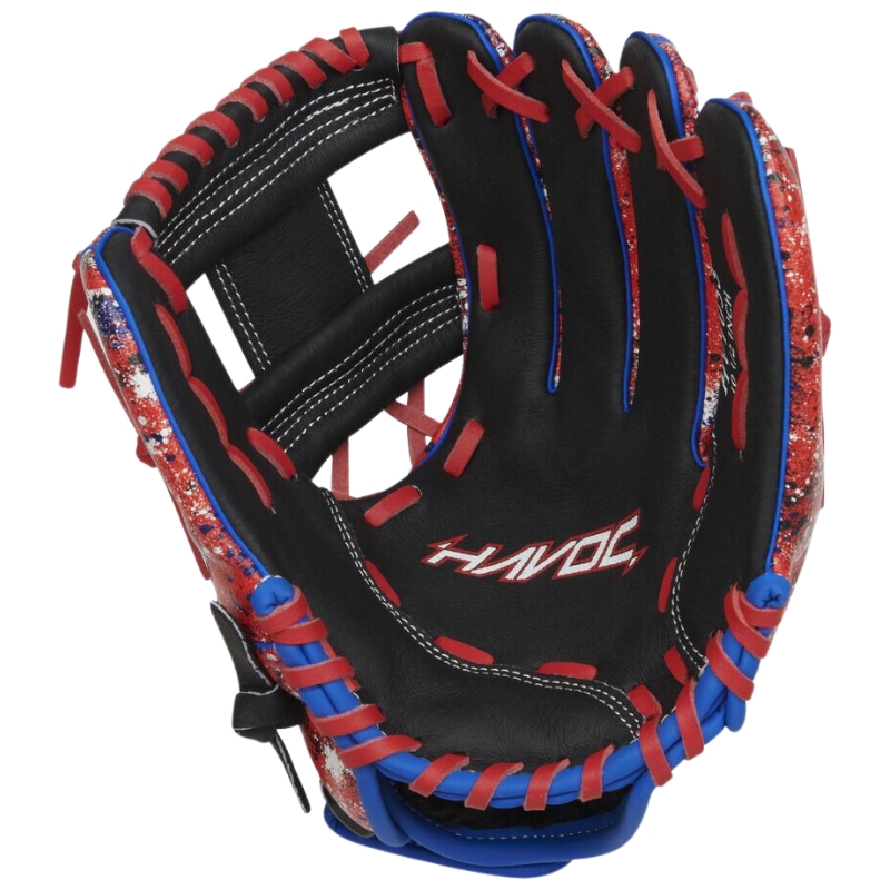 Get ready to cause some Havoc! This Easton Havoc Youth baseball glove is built to give your ballplayer a comfortable glove AND the confidence to play aggressively. For starters, you'll see the edgy design, with black, gray, and optic yellow spatter. It's impossible NOT to feel confident with this glove on! In addition, the PVC shell material is ultra durable and lightweight, making it perfect for players who are still learning the fundamentals of defense. On top of that, the soft palm lining and adjustable wrist closure means your player will have a secure and comfortable fit, even as their hands are growing. Get the glove built for ballplayers with an edge - grab your Easton Havoc Youth baseball glove now!