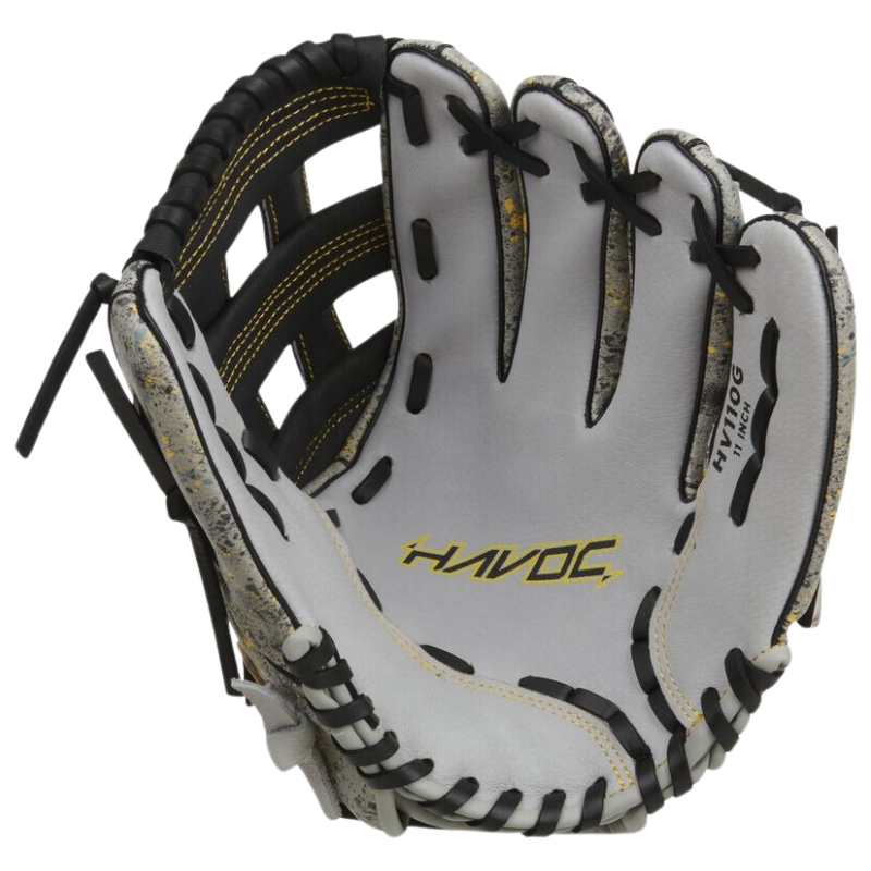 Get ready to cause some Havoc! This Easton Havoc Youth baseball glove is built to give your ballplayer a comfortable glove AND the confidence to play aggressively. For starters, you'll see the paint-spatter style design with black, scarlet, and royal colors. This glove will stand out as soon as it comes out of the bag! In addition, the PVC shell material is ultra durable and lightweight, making it perfect for players who are learning the fundamentals of defense. On top of that, the soft palm lining and adjustable wrist closure means your player will have a secure and comfortable fit, even as their hands are growing. Get the glove built for ballplayers with an edge -- grab your Easton Havoc Youth 11-inch baseball glove now!